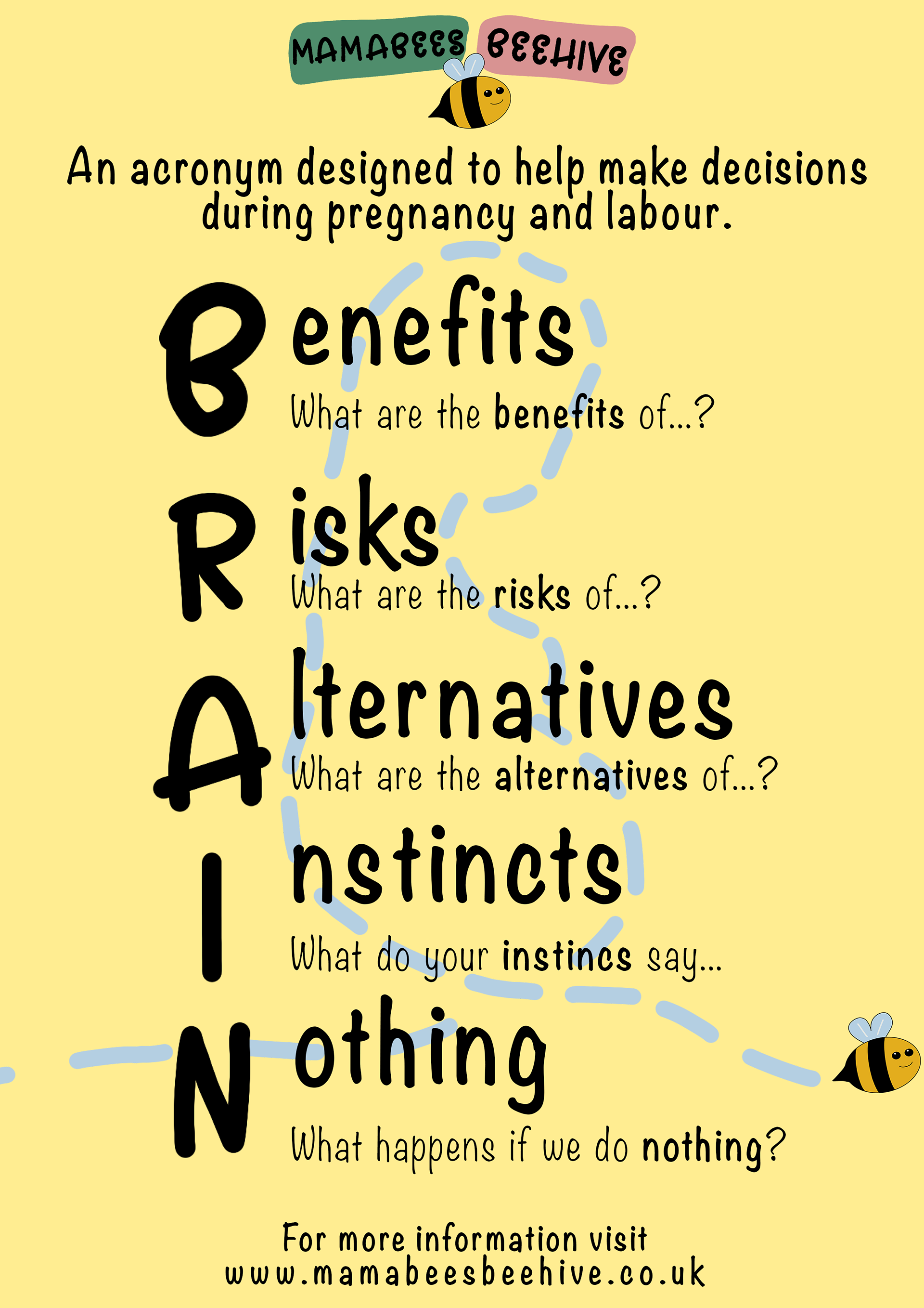 At the beginning of the project, I researched other mother and baby companies to see how they were branding themselves, but I also looked at other companies that used bees in the logo. This then inspired me to create different logos for my client until they were satisfied. I then went on to make the other secondary logos. I decided to hand-draw my own font to use for the logo and titles for social posts as I was unable to find one that would fit the theme I was going for. I also went for colours that are associated with children or babies, yellow, pink, blue and green. I kept these colours consistent through everything that I designed so there is a clear tone and message for the brand they are creating. During the meetings that we had, my client gave me a list of what they wanted such as business cards, feedback forms and information posters to hand out to expectant and new mothers. They also wanted to know that they could be trusted to listen to and that these classes are safe as they are both trained midwives and mothers themselves. I think this gave a unique aspect to their business. My clients were very happy with what I have created so far and have posted some of the work I have already created to their Instagram page @mama_bees_beehive.